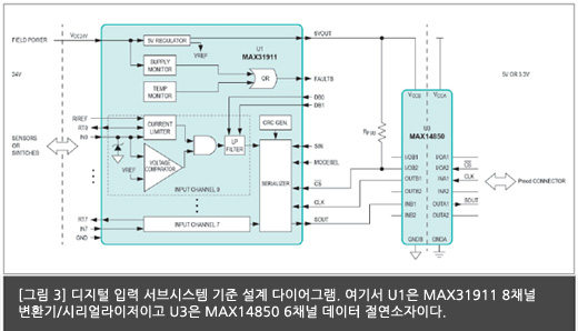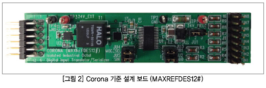 지금까지 이 글에서는 Corona (MAXREFDES12#) 서브시스템 기준 설계가 어떻게 해서 산업용 제어 및 자동화를 위한 초소형의 간단한 절연 디지털 입력 인터페이스가 될 수 있는지를 살펴보았다. Corona 설계는 8개 디지털 입력 채널을 제공한다. 동일한 SPI 인터페이스에 추가 8채널 디지털 입력 IC를 캐스케이드 연결하면 간단히 8의 배수로 동일한 SPI 인터페이스에 채널을 추가할 수 있다. 별도의 칩 선택 라인은 필요 없다. 센서 데이터를 PLC에 전송하는 데에는 단 하나의 SPI 인터페이스만 있으면 되기 때문에 추가 채널을 절연할 필요도 없다. 따라서 입력 모듈에 필요한 절연기 수를 크게 줄일 수 있다. 이 설계는 비용을 최소로 줄여주고 더 적은 공간을 사용하므로 PCB 공간당 더 높은 채널 밀도를 가진다. 예제 소프트웨어는 Nexys 3 또는 ZedBoard 플랫폼용으로 작성됐다. 특히 높은 통합과 낮은 전력 소모, 광 커플러가 필요 없는 데이터 시리얼라이저를 내장해 궁극적으로는 전력, 유연성, 그리고 다시 확보된 공간이라는 이 모든 장점이 산업용 애플리케이션에 강력한 이득을 가져다 줄 것이다. ES