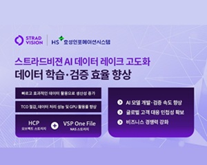 HS효성인포메이션시스템(대표 양정규)은 자율주행차량용 AI 기반 비전 인식 기술 기업 스트라드비젼의 데이터 레이크 고도화 사업을 성공적으로 지원했다고 밝혔다. HS효성인포메이션시스템은 대용량 비정형 데이터 처리와 고성능 GPU 분석 환경을 안정적으로 지원하기 위해 스트라드비젼의 데이터 레이크 확장을 위한 AI 인프라 고도화 및 핵심 솔루션 도입 프로젝트를 추진했다.