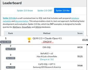 대한민국 토종 AI 스타트업이 글로벌 IT 거인들이 경쟁하는 세계 최고 권위의 기술 평가 무대에서 당당히 1위에 오르며 한국 소프트웨어의 저력을 입증했다. 다큐브가 국제 Text-to-SQL 성능 평가 지표인 ‘Spider 2.0’ Lite 부문에서 세계 1위를 기록했다고 1월 20일 밝혔다. 2025년 7월 DBT 부문 1위에 이어 두 번째 성과로, 국내 기업 가운데 국제 벤치마크에서 복수 부문 정상에 오른 사례는 처음이다.