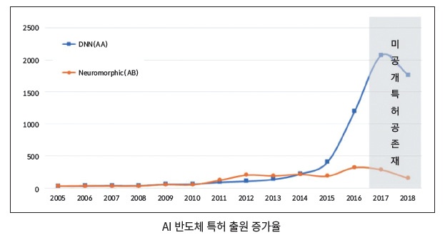 인공지능 반도체는 특허 측면에서 DNN(Deep Neural Network)과 뉴로모픽으로 분류할 수 있다.