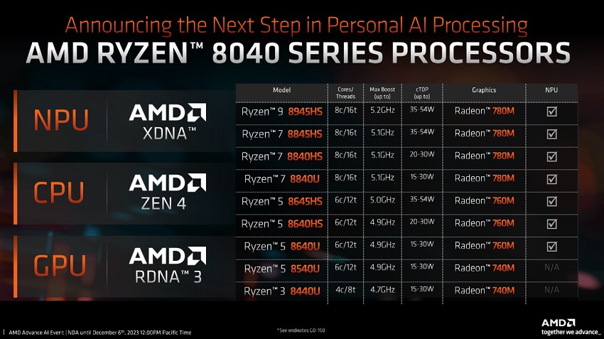 라이젠 프로세서 포트폴리오에 새롭게 추가된 라이젠 8040 시리즈는 에이서, 에이수스, 델, HP, 레노버, 레이저 등 주요 OEM를 통해 2024년 1분기부터 판매될 예정이다.
