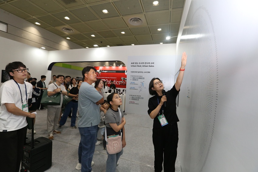 마지막 프로젝트인 ‘데이터 소니피케이션’은 3억 건이 넘는 데이터를 음악처럼 해석해 들을 수 있게 만든 세계 최초의 인공지능 기술이다. AI는 온도·습도·매출 등 데이터를 활용해 기온이 오르면 음이 높아지고, 매출이 줄면 소리가 낮아지는 식으로 정보를 소리로 표현한다. 이를 통해 시각 대신 청각으로 도시 데이터를 ‘듣는’ 새로운 감각적 경험을 제공한다.