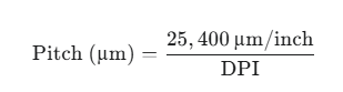 프린팅 이미지에서 가장 중요한 파라미터는 해상도(DPI, Dots Per Inch)이다. 이는 1인치(25.4mm)의 길이에 몇 개의 픽셀이 들어가는지를 나타내는 단위로, 기판 위 드롭들의 물리적 간격(Pitch)을 결정한다.