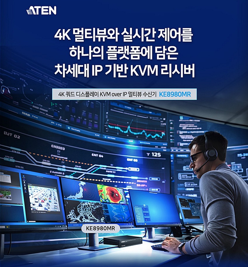 에이텐은 4K 쿼드 디스플레이 KVM over IP 멀티뷰 수신기 ‘KE8980MR’의 권장 사용 환경에 교통 관제, 방송 송출, 에너지 및 산업 인프라 제어, 보안 관제센터, 스마트시티 관제, 공공·민간 상황실 등 복합적인 시스템을 동시에 운영해야 하는 전문 분야를 추천했다. 여러 소스를 한 번에 호출하고 전환해야 하는 관제 업무의 특성상, 4K 기반 멀티뷰·빠른 서버 전환·물리·가상 통합 제어가 결합된 KE8980MR은 운영 속도와 정확도를 높이는 핵심 장비로 자리매김할 전망이다.