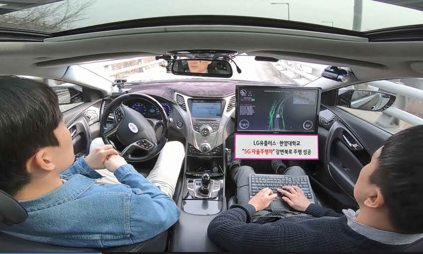 한양대학교 자동차전자제어연구실 ‘ACE Lab’과 LG유플러스는 한양대학교 서울 캠퍼스에서 5G 이동통신 기반의 도심도로 자율주행 기술을 공개 시연했다.