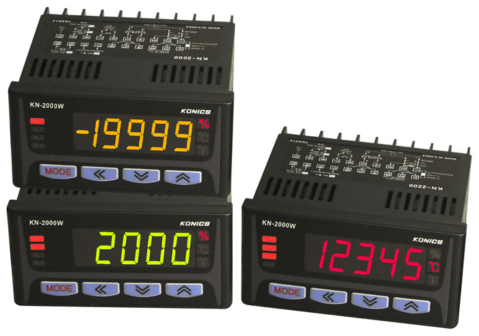 LED 멀티 지시계 KN-2000W 시리즈는, 제어 상태에 따라 표시부의 색상이 자동적으로 변경되어 사용자가 표시부 색상을 통해 직관적으로 기기의 상태를 파악할 수 있도록 하는 3색 컬러 표시 기능을 채용하였다. 또한 고휘도 LED를 채용하여 더욱 선명해진 LED 디스플레이로 시인성을 향상시켰을 뿐만 아니라, 합리적인 가격을 실현하여 고객들에게 많은 사랑을 받고 있는 제품이다.