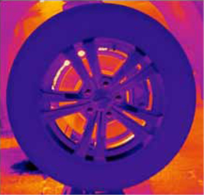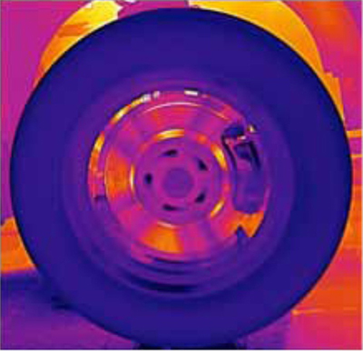 회전하는 타이어를 비냉각식 열화상 카메라로 촬영한 사진