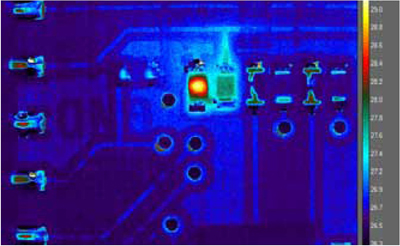 전자회로 기판을 비냉각식 열화상 카메라로 촬영한 사진