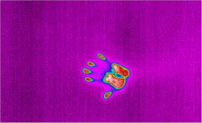 그림 3. 벽에 있는 손바닥 지문을 냉각식 열화상 카메라로 촬영한 사진 - 최초이미지