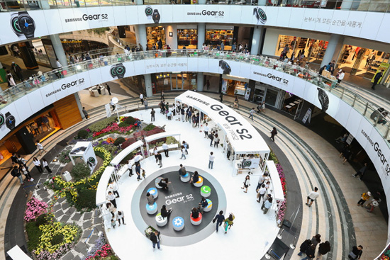 삼성전자가 최신 스마트 웨어러블 기기 삼성 기어 S2 출시를 맞아 2일부터 4일까지 서울 합정동 메세나폴리스 광장에서 기어 S2 출시 행사를 열었다.
