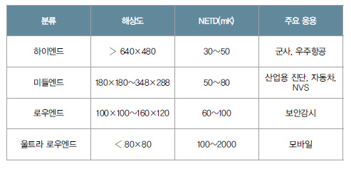볼로미터(Bolometer), 초전형(Pyroelectric), 서모파일(Thermopile) 기술이다. 가격과 성능 면에선 차이가 있지만 볼로미터 방식이 크기 소형화의 장점을 갖추고 있으며, 응답성이 빨라 활용도가 가장 높다.