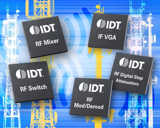 IDT의 RF 제품군은 전적으로 실리콘 기반으로서, GaAs(gallium arsenide)를 기반으로 한 이전 RF 디바이스에 비해서 확고한 이점들을 제공한다. IDT의 RF 제품 포트폴리오는 감쇠기, 믹서, 변조기 및 복조기, 가변 이득 증폭기, 스위치, RF 타이밍 디바이스 등을 포함한다. 이들 제품이 혁신적인 고성능 RF 솔루션을 필요로 하는 다양한 유형의 애플리케이션에 채택되고 있다.