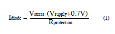 식 1에서는 Vstress > Vsupply라고 가정한다. 그렇지 않다면 0.7 V 추정치 대신 다이오드 전압을 더욱 정밀하게 측정한 뒤, 이 측정값을 계산에 사용해야 한다.