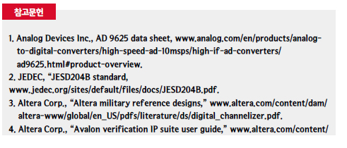 AD9625 ADC는 3 GHz 이상의 대역에서 작은 신호 대역폭을 처리할 수 있어서 시스템 설계자는 중간 주파수(IF)의 위치에 대해 상당히 유연하게 대처할 수 있다. 이 데이터 컨버터는 JESD204B 표준을 포함한 병렬, 직렬 인터페이스를 모두 지원하는 아나로그디바이스의 여러 신호 처리 장치 중 하나이다.2