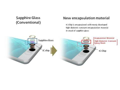 지문인식 기능이 내장된 스마트폰 등 모바일 장치는 날로 증가할 것으로 예상된다. 기존 정전용량식 지문인식 센서를 위한 패키지의 지문 접촉 부위에는 유전율이 높은 사파이어 글래스가 적용돼 왔다. 하지만 센서 패키지 소형화 및 슬림화가 어렵고 제조 공정이 까다롭다는 단점이 있다. 파나소닉은 높은 유전율로 사파이어 글래스를 대체할 수 있는 봉지재를 상용화했다. 이 재료는 성능을 증진해주는 것은 물론 센서 패키지를 더 작고 얇게 만들어준다.