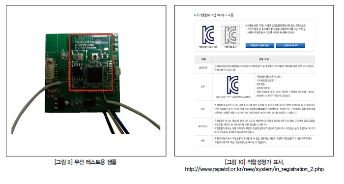 그림 9와 같은 식으로 최종 제품에 없는 통신용 전선과 펌웨어를 준비해야 한다. 이 때문에 무선 테스트용 샘플은 통신 케이블 정도의 최종 제품과는 다른 모습을 허용한다.