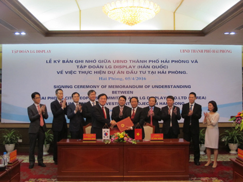 LG디스플레이와 하이퐁市 산하 인민위원회는 하이퐁市에 위치한 짱쥐에 공단에서 LG디스플레이 CPO(최고생산책임자) 정철동 부사장과 하이퐁市 레 반 타앵(Mr. Le Van Thanh) 서기장 등이 참석한 가운데 신규 모듈 조립 공장 투자와 관련한 양해 각서를 체결했다고 6일 밝혔다.