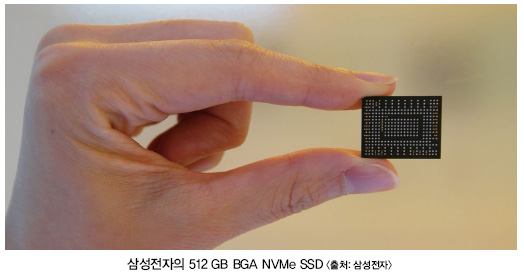 BGA(Ball Grid Array) SSD란 PCB 기판 위에 낸드, D램, 컨트롤러가 탑재되는 일반 SSD와 달리 PCB 기판 없이 하나의 패키지에 낸드, D램, 컨트롤러를 탑재한 초소형 SSD를 의미한다. NVMe(Non-Volatile Memory express)는 PCIe 인터페이스 기반의 SSD를 탑재한 서버, PC의 성능과 설계 유연성을 높일 수 있도록 만든 프로토콜로 초고속, 고용량의 데이터 처리에 적합하다.