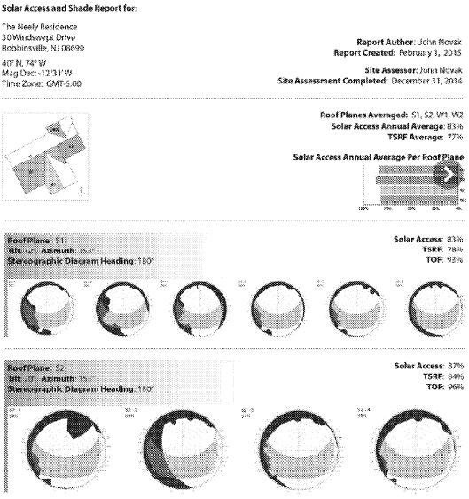 그 다음 과정은 특정 솔라 사이트의 솔라 에너지 수확 예측을 요약하고 리포트로 출력하는 것이다. 〈Fig. 27A〉는 두 개의 지붕 평면(roof plane)인 S1과 S2 사이트의 솔라 에너지 수확 예측 리포트다.