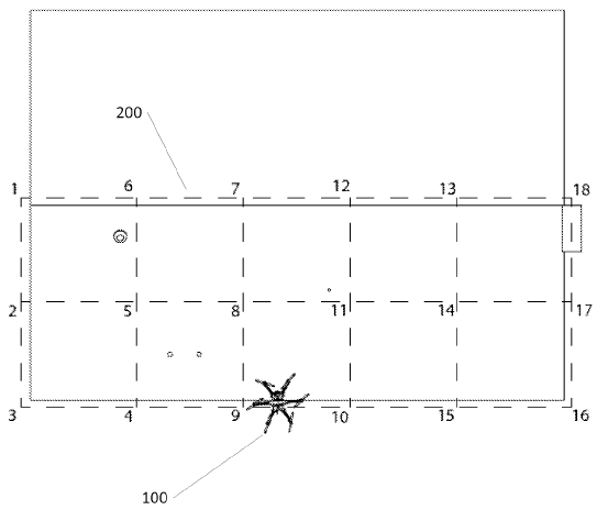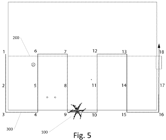〈Fig.4〉는 100의 UAV가 지붕 200에서 18개의 서로 다른 후보 사이트들을, 원격 조종자의 명령과 지리 좌표(geo-coordinate)와 정해진 비행경로에 따라 비행하면서 평가를 수행하고 있는 그림이다. 또는 원격 조종자의 명령 없이 사전에 입력된 프로그램에 따라 자동모드로 수행할 수 있다.