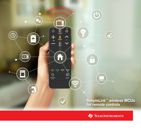 TI의 새로운 SimpleLink ZigBee RF4CE CC2620 무선 마이크로컨트롤러(MCU), 블루투스 저에너지 CC2640 무선 MCU, 멀티표준 CC2650 솔루션으로 여러 기능의 리모트 컨트롤 개발이 가능하다. 또한 이들 MCU의 초저전력 특성을 활용함으로써 적은 전력으로 더 많은 기능을 구현할 수 있다. 엔지니어는 다양한 표준 및 제품에 따라서 R&D 투자를 재사용할 수 있으며, 개발자들은 배터리 수명에 영향을 주지 않으면서 음성 명령과 검색, 동작 인식, 포인팅 같은 최신 기능을 사용할 수 있어 제품을 차별화할 수 있다.