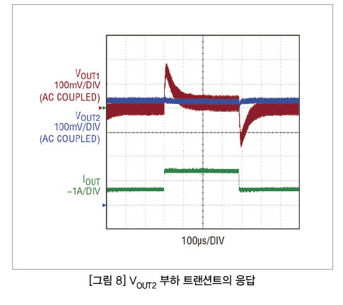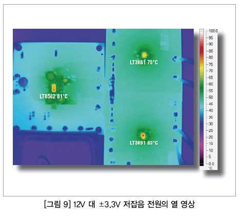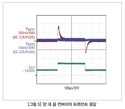 〈그림 5〉는 2개 출력 전압의 트랜션트 응답을 보여준다. 〈그림 6〉은 전체적 시스템의 열 성능을 보여준다.