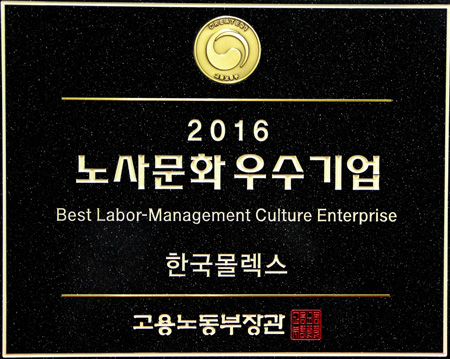 한국몰렉스는 그 동안 열린 경영과 소통 중심적인 노사관계를 구축하며 한국경제매거진이 수여하는 일하기 좋은 기업에 7년 연속 선정되는가 하면 2015년 대한민국 소통경영 대상도 수상한 바 있다.