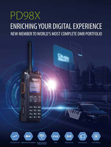 세계적인 PMR(Professional Mobile Radio) 통신솔루션 공급업체 하이테라(Hytera)가 최신 DMR(Digital Mobile Radio) 휴대용 무전기 PD98X을 출시해 하이테라의 DMR 포트폴리오에 또 다른 신제품을 추가했다. PD98X는 잡음제거기술을 통해 독보적인 오디오 경험을 제공하며 풀 듀플렉스(full duplex) 신호, 마이크로 SD 레코딩 역량, 블루투스 4.0, 커버리지를 확장해주는 단일주파수 재송신기 모드 등의 새 기능을 특징으로 한다.