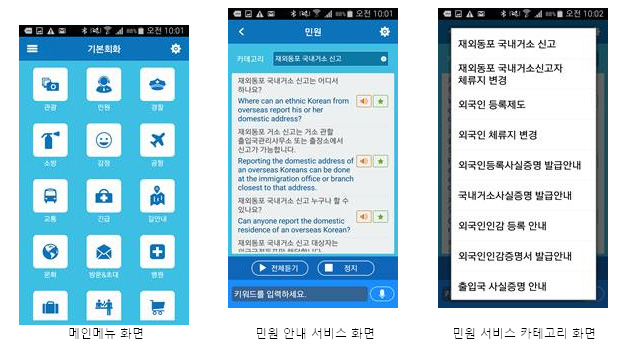 이번에 새롭게 추가된 민원 서비스 카테고리는 현장에서 외국인 관련 민원처리를 담당해온 수원시 시민봉사과, 구청 종합민원과, 동주민센터 담당 공무원의 목소리를 담아 구성됐다. 특히 이번 업그레이드 버전에는 다문화 가정 및 외국인이 자주 사용하는 재외동포 국내거소 신고, 재외동포 국내거소신고자 체류지 변경 등의 민원을 카테고리화해 기존보다 빠르고 쉽게 필요한 민원에 대한 번역정보를 볼 수 있도록 했다. 또한 지속적인 업데이트를 통해 수원에 있는 고유지명에 대한 올바른 번역 등 애플리케이션의 통·번역 기능도 강화했다.