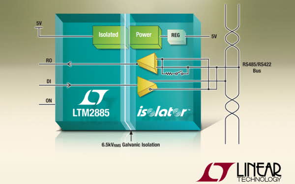 통합된 선택 가능형 터미네이션은 케이블이 제대로 터미네이트 될 수 있도록 하고, 소프트웨어 제어를 통해 버스의 어디에서나 터미네이션을 추가 또는 제거할 수 있다. 5V의 공급 전압으로 동작하는 LTM2885는 어떠한 외부 부품도 추가할 필요가 없으며, 절연 RS485 직렬 데이터 통신을 위한 독립형 μModule 솔루션을 제공한다.