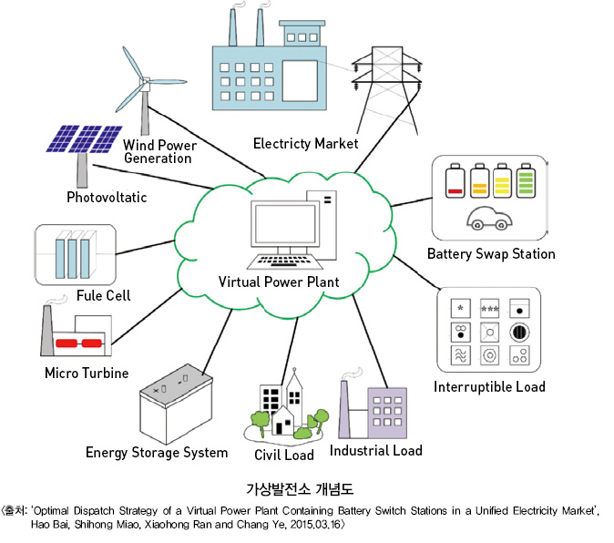 한편 분산형 에너지원을 소프트웨어로 통합 운영해 지역적 제한 없이 수요자원으로 활용하는 가상발전소(Virtual Power Plant) 개념도 등장하고 있다.