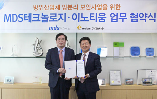 융합 솔루션 전문기업인 MDS테크놀로지가 데이터 보안업체인 이노티움(대표 이형택)과 방산분야 망분리 보안사업에 대해 공동 협력하기 위한 업무협약을 체결했다고 밝혔다.