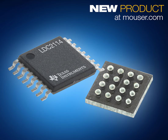 Mouser Electronics, Inc., the industrys leading New Product Introduction (NPI) distributor with the widest selection of semiconductors and electronic components, is now stocking the LDC2114 inductive touch solution from Texas Instruments (TI), with the LDC2112 solution coming soon. New additions to TIs sensing solutions, the LDC2112 and LDC2114 are multi-channel low-noise inductance-to-digital converters optimized for inductive touch applications on monolithic surfaces.