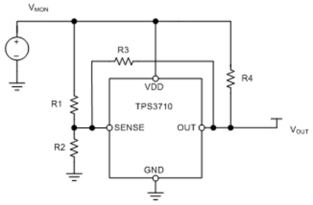 ▲ 그림 1. TPS3710에 히스터리시스 조절을 위한 저항 추가