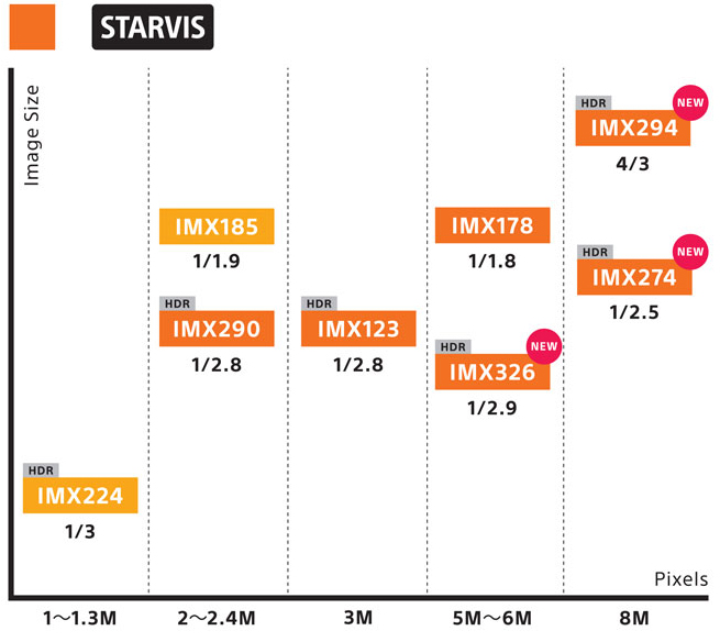 또한 로드맵에는 고감도 성능의 스타비스(Stavis) 시리즈 센서에 대한 내용도 담겨 있다. 이는 대부분 8 MP 이미지 촬영이 가능한 마이크로 포서즈(Four Thirds) 크기 센서인 IMX294를 포함한 HDR 센서에 대한 것이다. 포서즈 센서는 BSI 기술을 채용한 최초의 포서즈 BSI CMOS 센서가 될 전망이다. 스타비스 시리즈의 경우 산업용 센서로 개발됐지만, 소니는 향후 스타비스 시리즈가 다른 용도로 활용될 가능성도 시사했다(그림 2 참고).
