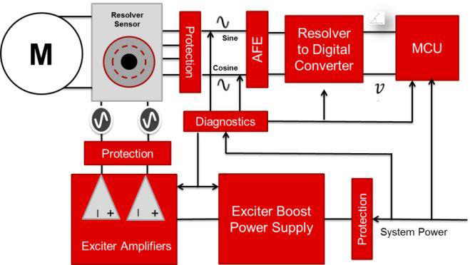 리졸버로의 출력은 아날로그 프론트 엔드(AFE)를 필요로 하는 아날로그 신호로, 각도를 계산 하는 마이크로컨트롤러나 제어 장치의 신호를 정리하고 조정한다. 리졸버-디지털 컨버터(RDC)는 사인파 및 코사인파를 처리할 수 있도록 디지털 도메인으로 변환한다. 이들 출력이 SPI(serial peripheral interface), 병렬, 에뮬레이트 인코더 및 아날로그 같은 다양한 옵션을 통해서 각도 및 속도 정보를 MCU로 전달할 수 있다. 이 시스템은 또한 과전류, 과전압, 단락 회로, 과열 보호 같은 센서와 전기 장치들 간의 다중 보호 및 결함 진단 기능의 이점을 제공한다.