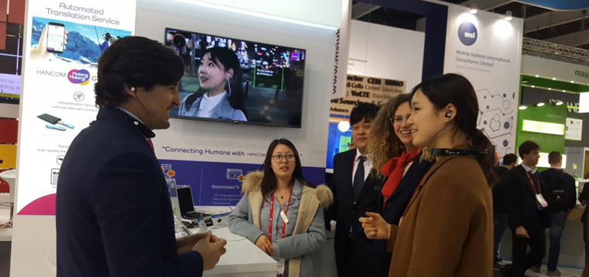 ▲ 그림 2. 한컴그룹은 MWC 2017에서 선보인 ‘한컴 말랑말랑 지니톡 웨어러블’은 넥밴드 형태로 제작된 음성인식 자동통번역 기기로 넥밴드에 장착된 마이크와 이어폰을 통해 특별한 액션 없이도 외국인과 모국어로 편하게 대화할 수 있으며 한국어, 영어, 일본어, 중국어 통번역이 가능하다. 〈출처: 한컴그룹〉
