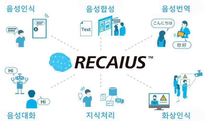 리카이우스는 클라우드 기반의 AI 서비스로, 음성 인식, 음성 합성, 음성 번역, 음성 대화, 지식 처리, 동시통역뿐만 아니라, 도서 등 대형 문서를 음성 합성을 통해 신속하게 음성화를 시켜주는 DaisyRings, 넘치는 데이터에서 지식을 추출해 비즈니스에 활용할 수 있는 지식검색·활용 서비스, 카메라 영상에서 사람의 특성과 행동을 파악한 후 상황 이해 및 예측에 활용되는 이미지 인식 기능이 탑재되어 있다.