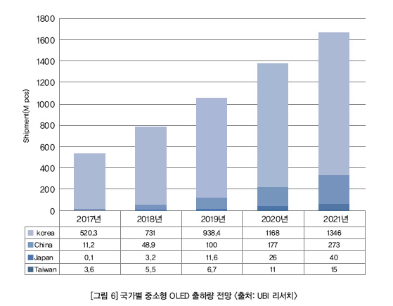 애플만 하더라도 OLED가 탑재된 아이폰의 출하량이 2018년 1억 7,000만 대, 2019년 2억 6,000만 대 수준으로 증가할 것으로 전망되고 있다. 여기에 화웨이, 샤오미, 비보, 오포 등 중국 스마트폰 제조사의 OLED 수요까지 증가하고 있어 공급 확대가 요구되고 있다.
