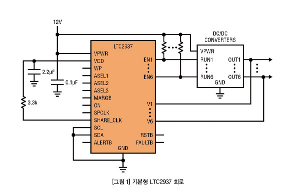 먼저 기본형 하드웨어 구성을 살펴보고, 그런 다음 LTC2937의 추가적인 기능들을 활용하고 유연성을 높이는 방법에 대해서 살펴본다.