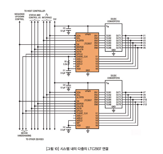(그림 10)은 LTC2937들 사이의 연결을 보여준다. 다음과 같은 규칙들을 지켜야 한다.