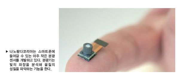 저희 회사가 개발한 제품은 디지털 분광 센서다. 예를 들어, 슈퍼에서 사과를 고를 때 어느 것이 단 사과인지 빛으로 알아내고, 혈압이 얼마인지 혈당이 어떻게 되는지 피를 뽑지 않고도 안다. 또한 수돗물에 중금속이 들어있는지 미세먼지가 들어있는지 빛으로 알 수 있는 것이 분광기술이다. 스마트폰에 들어갈 수 있는 아주 작은 분광 센서를 개발하고 있다. 창업하게 된 첫 번째 동기는 융합에 의거한 산업이 온다고 생각했다. 그중에 가장 중요한 것은 데이터와 소프트웨어다. 소프트웨어 데이터 경쟁력을 확보하기 위해서는 나름 생각한 게 가장 기초 물질, 소재 같은 원천 기술에 의거한 소프트웨어와 데이터를 하면 거기서 나오는 기술은 남들이 쉽게 못할 것이라고 생각했다.