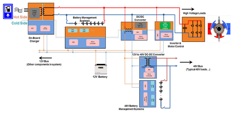 그림 1은 전압 및 전류 모니터링을 필요로 하는 일반적인 HEV/EV 시스템 블록 다이어그램이다.