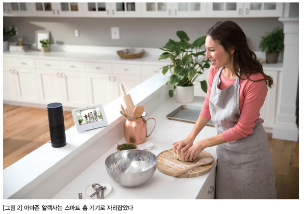아마존 에코, 알리바바 지니, 구글 홈 등의 기기는 AI의 발전을 생활 속에서 체험할 수 있는 사례이다. 이들 기기가 설치되어 있다면 옷을 입거나 다른 작업을 하면서 음성으로 명령을 내려 서비스를 이용할 수 있다. 핸즈-프리(Hands-free), 아이-프리(Eyes-free), 어텐션-프리(Attention-free)로 AI 서비스를 이용할 수 있게 된 것은 이전과 비교해 큰 변화로 게임 체인저 능력을 갖춘 셈이다. 학습 능력도 있어 활용법이 더욱 늘어날 것이다.