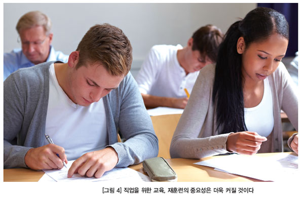 교육과 재훈련도 고민해야 할 문제다. 과거에는 ‘평생직장’이라는 개념이 있었지만, AI가 도래하고 있는 지금은 ‘평생직장’이란 개념은 희미해지고 있다. 계속 이직을 해야 하는 상황이기도 하고, AI 때문에 재훈련이 필요하기도 하다. OECD는 2017년 여름 보고서 발간과 함께 웹사이트를 열어 일자리 수급 데이터를 공개해 일자리 매칭을 할 수 있게 제공하고 있다. 예를 들어 루마니아에는 수학 인재가 많지만, 일자리는 별로 없는데, 네덜란드에서는 수학 일자리는 많지만, 인재가 없다는 것을 알려주는 것이다. 또 프랑스는 휴가 일수와 함께 교육을 받을 수 있는 별도의 교육 휴가와 보조금도 지원한다.