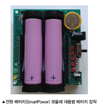 아래 사진은 SmartPower 모듈에 대용량 배터리 5A(2,500mA 2개 직렬)를 연결한 모습이다.