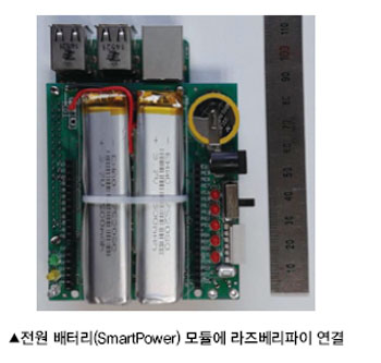 아래 사진은 SmartPower 모듈에 라즈베리파이를 연결한 모습이다.
