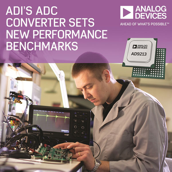 AD9213은 항공 및 방산 분야 고객들에게 더 큰 유연성과 함께, 전자 관제 및 역탐지(countermeasure) 애플리케이션을 위한 더 넓은 스펙트럼 섹션 처리 성능, 그리고 레이더(RADAR) 설계 분야에 더 높은 해상도와 더 늘어난 탐지 범위를 지원할 수 있는 능력을 제공한다. 신제품은 전자 시험 및 측정 장비 제조회사(electronic test and measurement manufacturers, ETM)가 디지털 오실로스코프와 분광기/화학 분석기 같은 시간 도메인 애플리케이션에서 차원이 다른 월등한 성능과 제품 차별화를 실현할 수 있게 해준다.