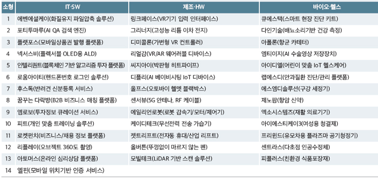 A. 4차 산업혁명 관련이나, 도전적인 과제를 추구하는 스타트업이 많이 참여하였다.