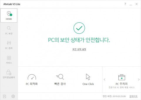안랩은 그동안 사용자의 이용 데이터를 분석, 많이 사용하는 기능을 메인 화면에 배치하고 PC상태를 한눈에 파악할 수 있도록 메인 화면을 개편했다. 사용자들이 많이 사용하는 기능인 PC 검사, PC 최적화 등을 메인 화면에 배치하고 다른 검사옵션과 PC관리 기능도 첫 화면에서 모두 실행 가능하도록 구성했다. 또 초록, 주황, 빨강의 세 가지 색으로 PC 보안 상태를 직관적으로 표시해 사용자 편의성을 높였다.
